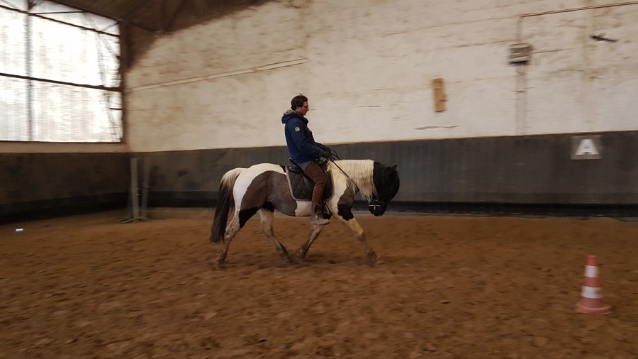 J'avais mis un petit croisillon sur une diagonale, qu'on a passé 2 fois au trot puis j'ai laissé la dessus. Pas le courage de descendre/remonter pour bouger les barres ^^