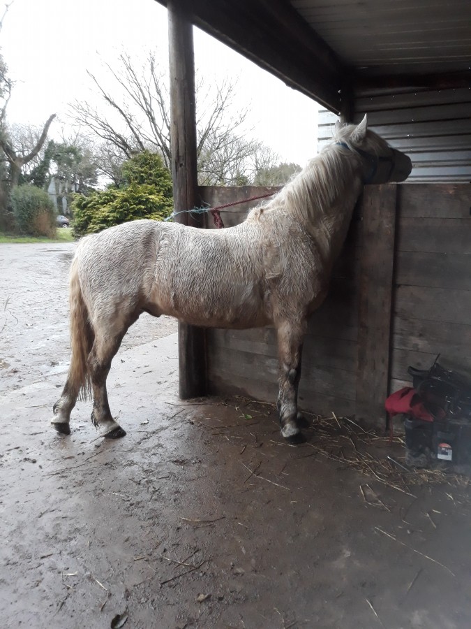 Après avoir monté par -10°c mardi, hier on avait 13°c... Il pleuvait beaucoup le matin, du coup je l'ai récupéré trempé pour mon cours. Il a séché rapidement et quand on est sorti du manège il faisait soleil.