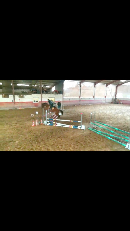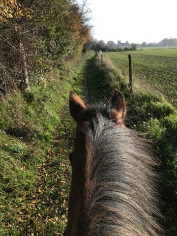 Je l'ai remonté en balade le mardi suivant comme c'est un jour de non chasse! Il était trop content de sortir, il m'a fait qq bug ms dans l'ensemble il marchait très bien (voir trop précipité ms pr une fois qu'il avance de lui mm j'ai laissé faire) il voulait trotter sauf que les terrains ne s'y prêtaient pas du tout