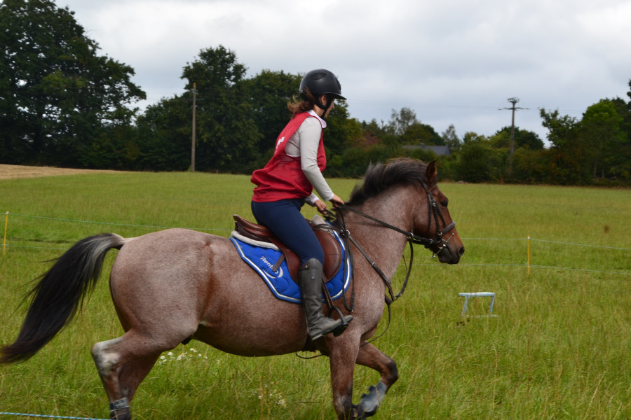 Du coup mercredi dernier j'ai fait notre 1ère balade. Le poney était à fond, il n'aurait pas de me proposer des départs au trot, j'ai fini par accepter ms c'était un gros n'importe quoi, il trottait à fond sans faire gaffe où il mettait les pieds et comme on voyait pas trop le sol ac les herbes hautes j'ai du stopper ça (on faisait que glisser/trébucher) ms j'ai du batailler pour ralentir .. Du coup comme il était bien motivé j'avais repéré un chemin qui montait pour galoper. Ca l'a fait un peu moins rire et il l'a fait. Arrivé en haut je lui ai reproposé de galoper, il était ultra dispo il est parti tout de suite dans un galop cadencé, tout en restant rond, royal. J'ai pu faire des transitions pour bosser les départs, il était vraiment chouette. J'ai pas fait une balade très longue pcq je suis partie tard et comme je ne connais pas les chemins je voulais rentrer avant la nuit pour pas me perdre.