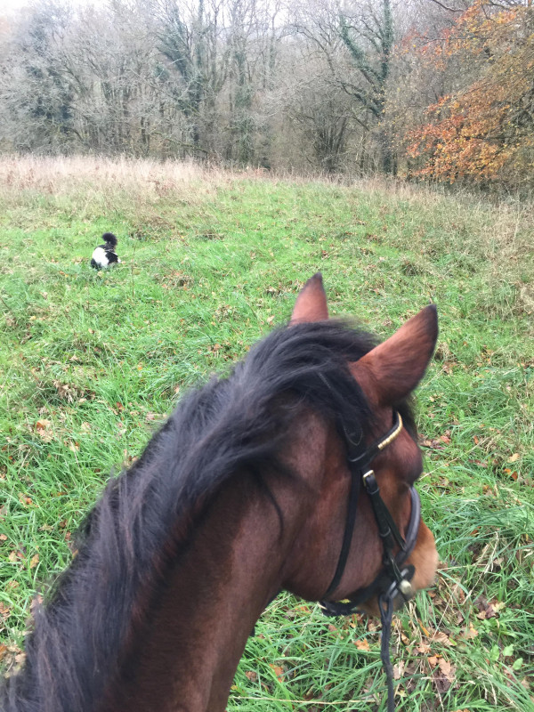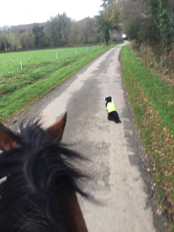 Hier il faisait beau du coup go pr une séance sur le plat ac Gus. J'ai commencé en marchant rene longue en faisant le tour du champs (ac le chien qui s'éclatait à nous faire des queues de poissons ts les 10 m