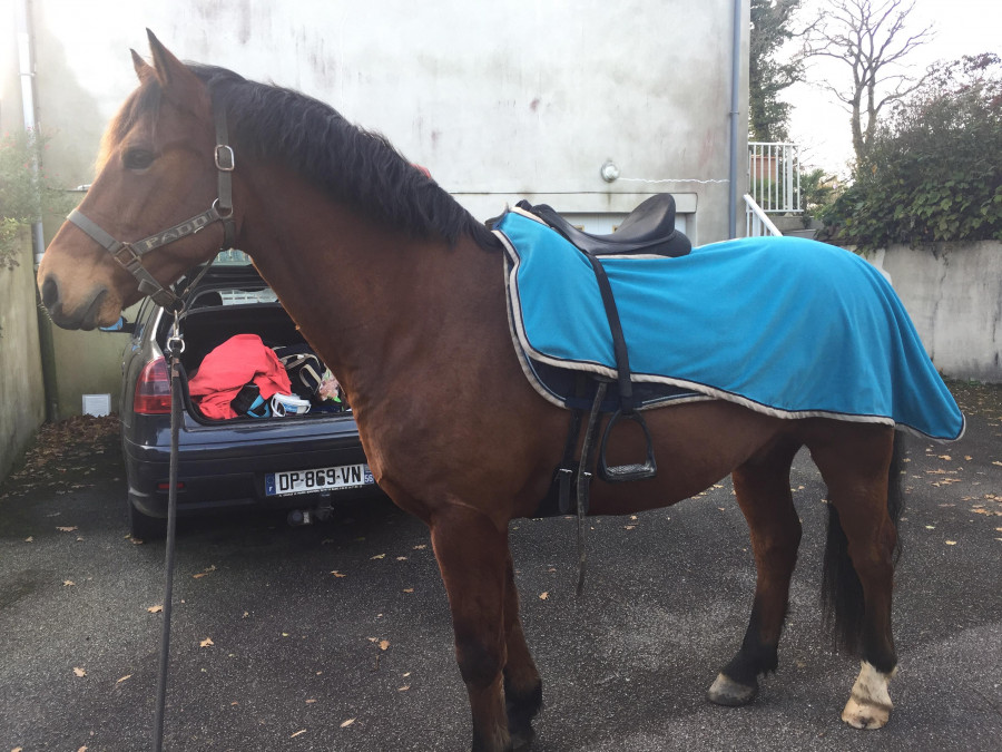 Et après au tour de Momo. J'avais demandé à mon père de venir filmer ! Dans l'ensemble il a été plutot sage. Jusqu'au moment où il m'a fait une petite balade, il trottait tout gentiment à main gauche quand tout à coup il a jeté la tête puis le corps vers la droite, j'ai un peu volé derrière
