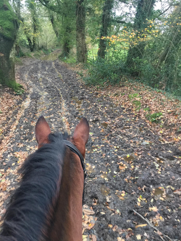 Après un peu de trot en extension. J'ai galopé assez vite, il était pas mal. On a un peu discuté pour les départs au galop en restant rond, j'ai fini par avoir le dernier mot, et après il était vraiment trop chouette, j'aurais pu galoper pdt des heures (ms apparemment pas lui