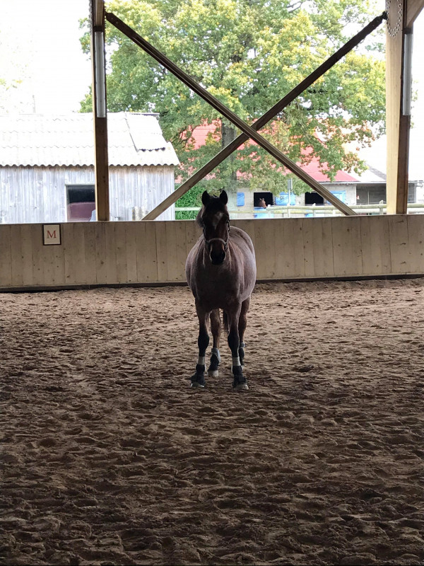 Ms sinon début de séance vraiment bien, il allait bien sur son cercle, changement de main ok, transitions ok (bon les descendantes on tombe souvent ds l'arret au lieu du pas ms j'aime autant)! Bref ravie de mon Momo malgré sa petite blague !