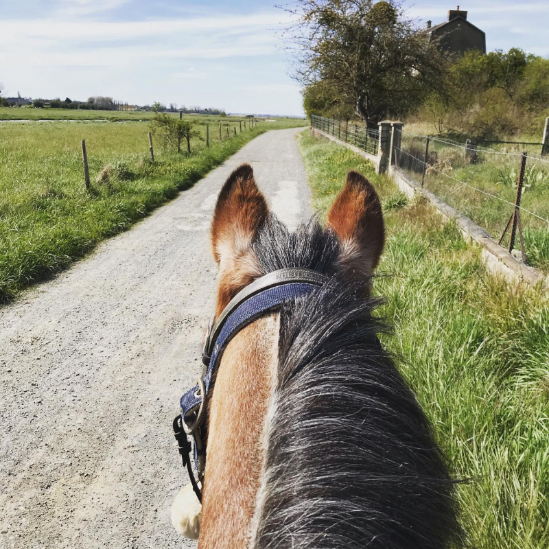Dimanche 2h de balade en fin de matinée sous le soleil entre copines (et copains poneys puisqu'on est partis avec ses 2 meilleurs potes) et gros brouting le soir quand je suis revenu le couvrir.