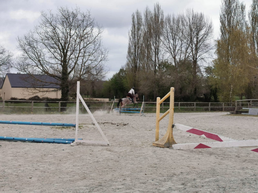 Après concertation avec ma coach on part d'abord sur la 60cm, 10mn de pas en extérieur, puis on détend solo entre 2 groupes de petits au manège, 3 sauts sur le vertical, 2 sur l'oxer go en piste.