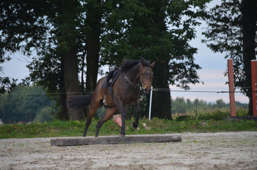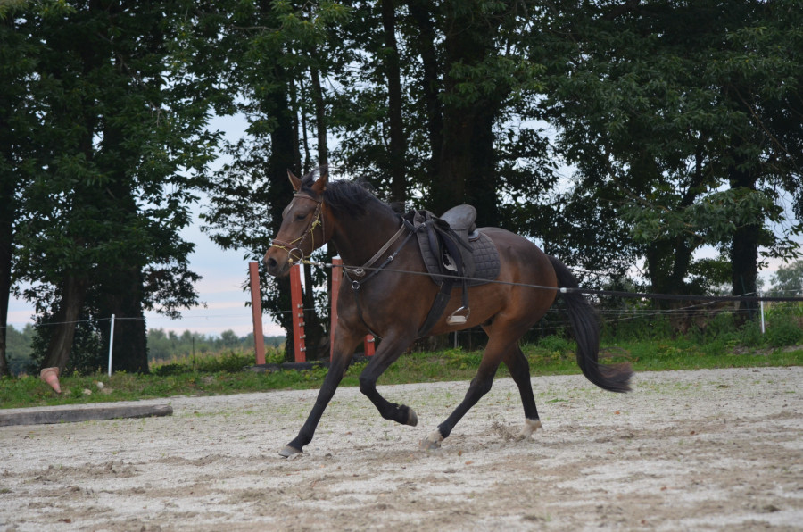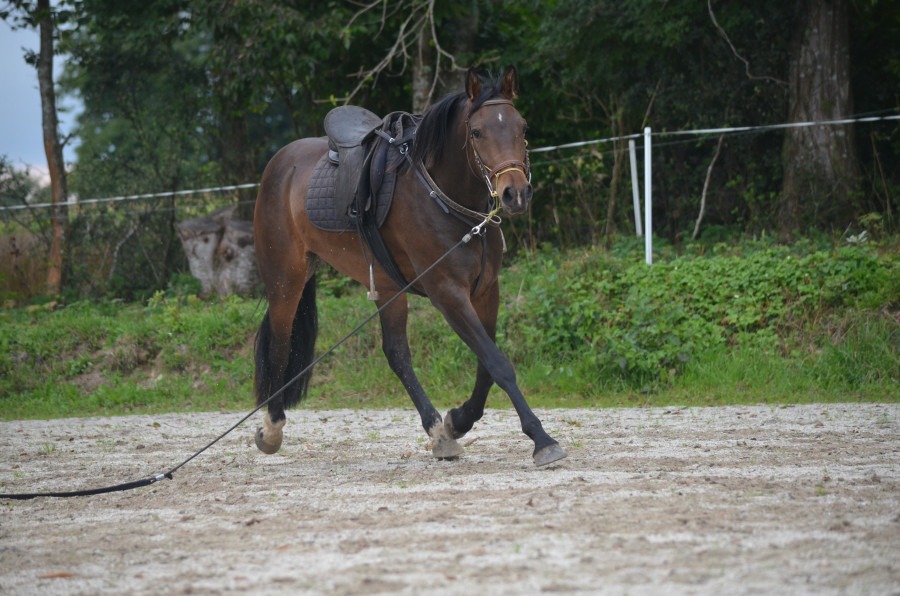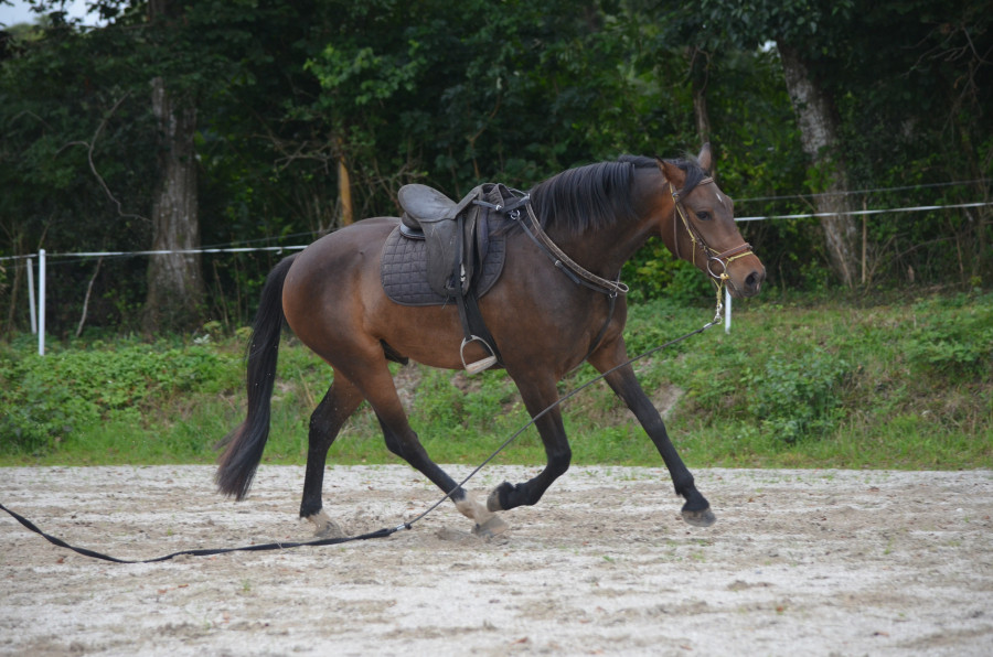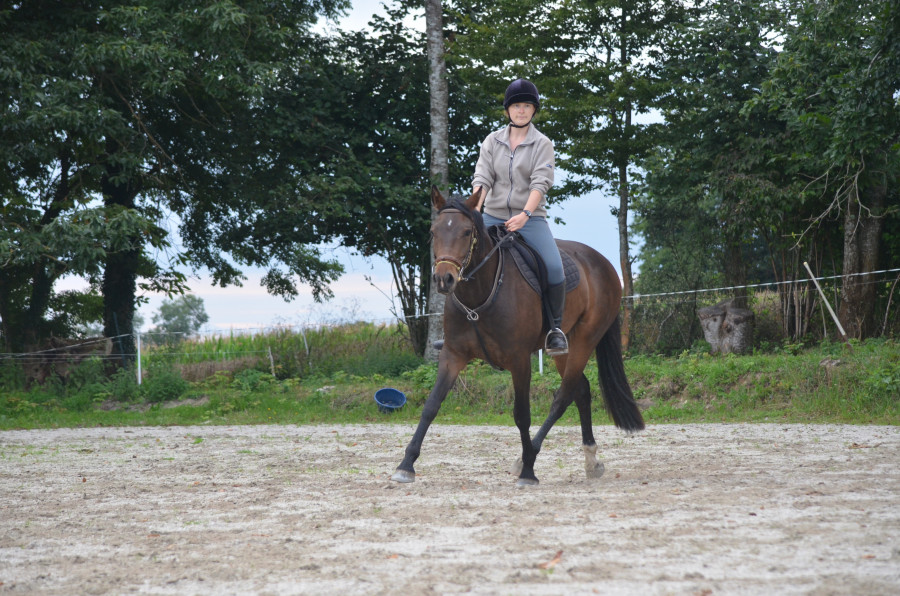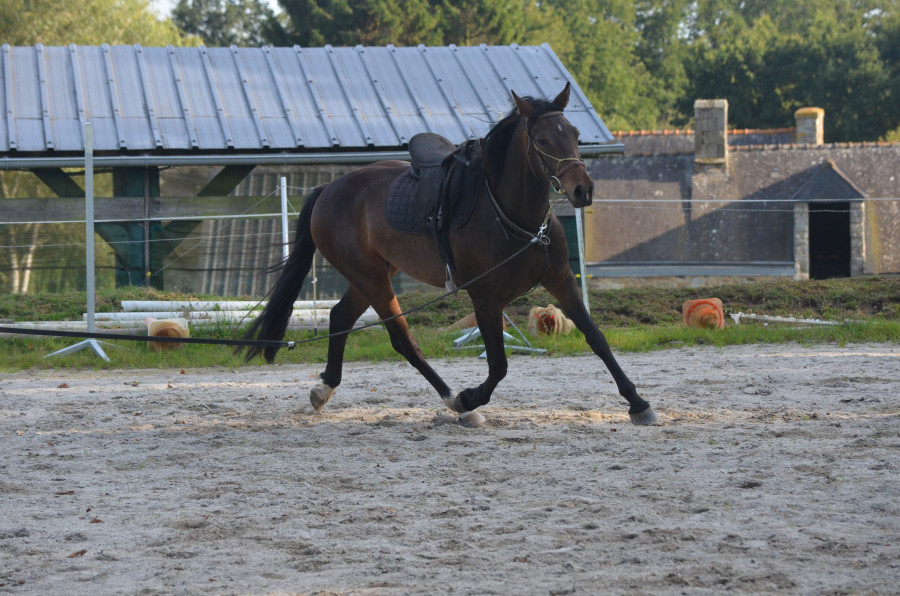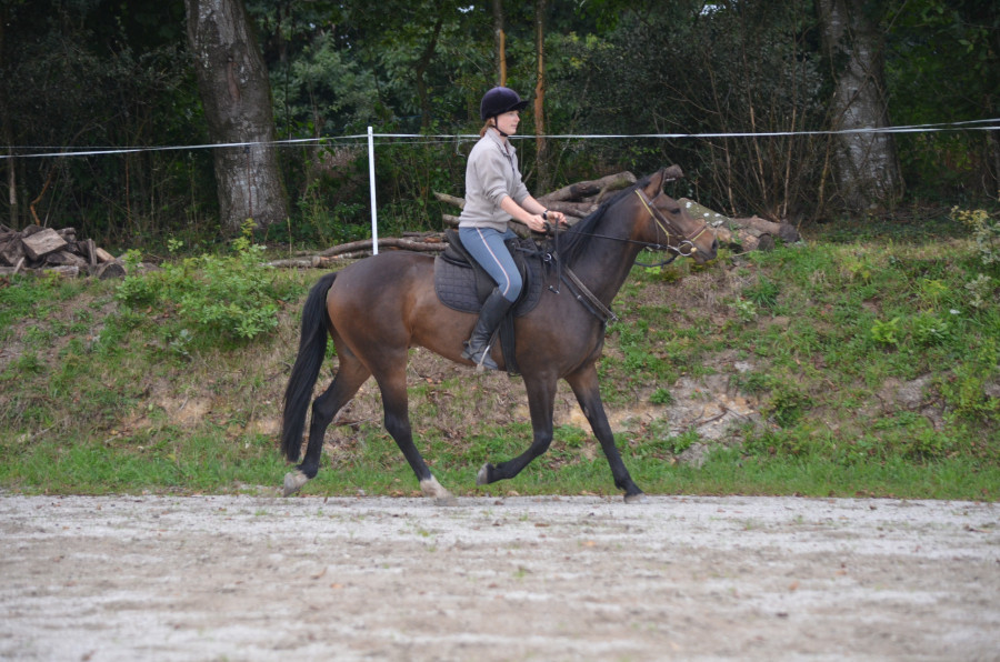 la semaine dernière on a remarqué qu'il était un peu gêné à droite du coup on a fait des séances plus courtes en travaillant qu'au pas ! Il a bcq progressé !