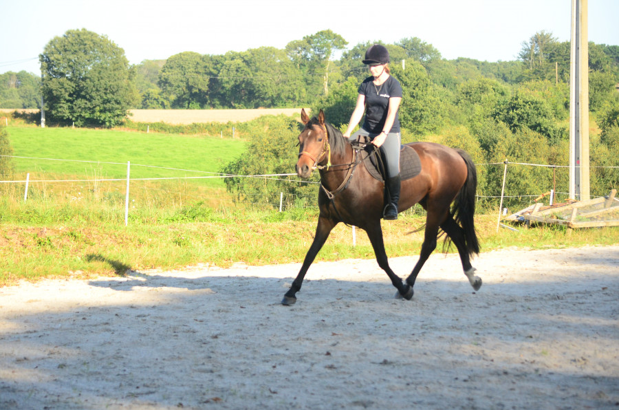 Du coup les autres séances se sont faite en carrière. C'est C. qui l'a monté ! Dans l'ensemble ça allait ms il y avait qq comportements qui ne plaisaient pas forcément. Il lui a mis un petit coup de cul sur un départ au galop, rien de méchant, ms il a compris que c'était interdit !