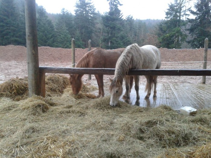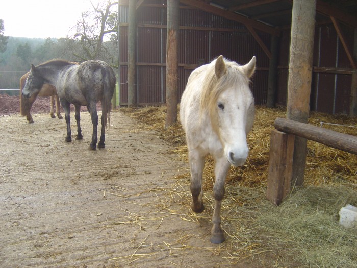 Du coup moi ma ponette, elle a son boxe ouvert sur le pré, ca c'est top pour elle et son arthrose, comme ca elle se gère toute seule! et j'ai remarqué qu'elle devait passer une bonne partie de la nuit dans le boxe, mais le nez dehors, car ya un tas de crotte pas loin de la porte du boxe, de la longueur de son dos!