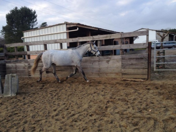 Mais il commence à bien comprendre! Ca ameliore bien l'allure, comme il faut que je cours un peu a coté au trot, je ne vois pas, mais au bruit, ya une différence!