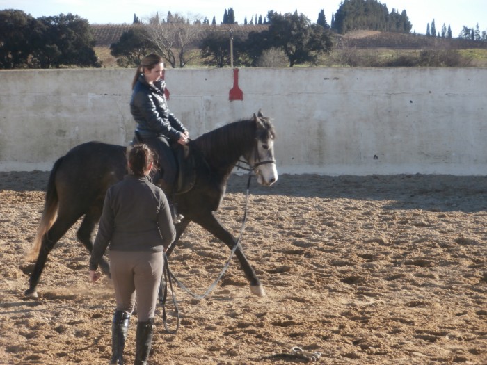 A peine le temps de le mettre sur un cercle, il se met au trot, un bon trot de course