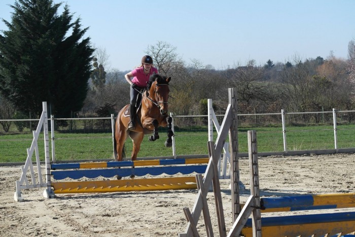 Du coup à la fin je l'ai laché dans la carriére et pour le coup il à voulu jouer, donc on à sauté une petite barre qui trainait, premier vrai saut en liberté si on ne compte pas les barres aux sols. Et on à fait un salu en total liberté, bon je lui soutient encore la jambe pour lui initier le mouvement, je ne sais pas bien comment m'y prendre pour le lui montrer sans lui soutenir la jambe...si vous avez des idées...