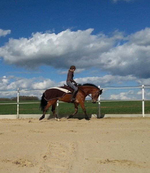 Du coup on à bossé un peu en carriére avec ma super coatch, ça à été un peu beaucoup catastrophique, surtout venant de moi, position pourrie, jambes pas en place, rênes soit trop longues soit trop courte, penchée en avant...bref...j'ai quand même pris de groooosses lacunes en 10 ans sans metre les pieds dans une carrière...du coup je lui ai un peu araché la geule j'aime pas ça...mais bon il à été super cool malgré tout... D'ailleurs...faudrais peut être que je reduise mes etriers non? j'ai pris l'habitude de monter extrêmement long en 10 ans de rando...j'ai d'ailleurs déjà reduis de deux trous depuis que j'ai le loulou...mais...je devrais peut être encore un peu non? au moins pour le boulot en carriére je pense...sur les photos je trouve mes jambes quasi à la verticale...ca dois pas aider pour les garder en place...puis mes jambes ont l'air vachement en avant...je sais pas si ça viens des photos ou si ma selle est trop en avant...ou seulement ma position pourrie XD