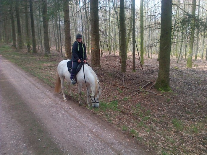 Plus sérieusement ensuite, se calme et étire son dos en baissant bien la tête à la limite du sol j'étais ravie! un trot plutôt actif mais très correct! Et à l'écoute pour revenir au pas, repartir au trot, pas et arrêt !
