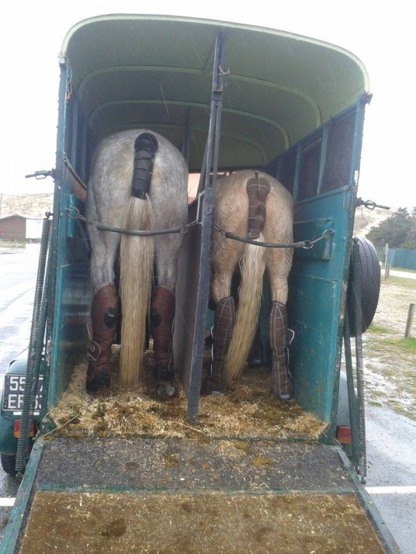 J'ai eu une sacrée frayeur par contre ! A l'attache, pendant que je discutais avec une amie, elle a passé sa nuque sous la longe, s'est enroulée je ne sais comment. Elle était complètement coincée et a tiré très fort pour se libérer. Heureusement, elle était attachée à une ficelle qui a cédé. Pendant quelques secondes, elle a "joué" avec sa langue et sa mâchoire, tête basse. Mais, visiblement, plus de peur que de mal.