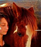 " Son oreille gauche s'abaisse de surprise. « Tu es sure ? » me dit-elle, alors je ramène ma jambe droite pour dire : « Oui. » Elle tourne et se dirige vers l'obstacle, bien que je voie qu'elle me croit toujours pas car ses oreilles pivotent indépendamment. Es-tu sûre ? Me demande t-elle encore.Oui ! Dis-je avec emphase, en la poussant en avant avec mes jambes et mon buste.Ses oreilles pointent en avant, ensemble cette fois, son allure s'accélère, et j'épprouve la joie de voler dans son corps. Nous y sommes presque à présent, et je la sens rassembles ses forces pour la massive poussée, toute cette énergie comprimé qui explose, avant. Silence. Ensemble, Elle et moi décrivons un arc de cercle par-dessus l'obstacle. Nous volons ."
