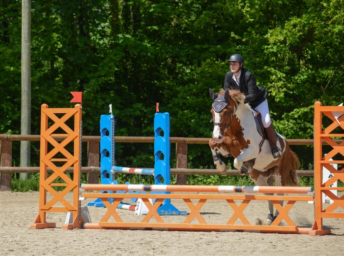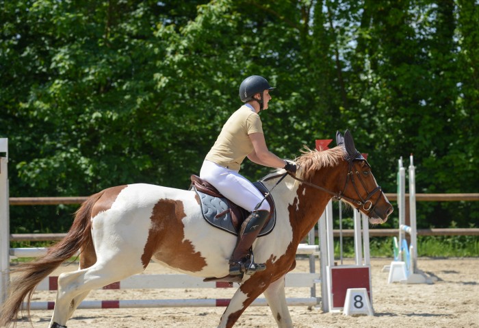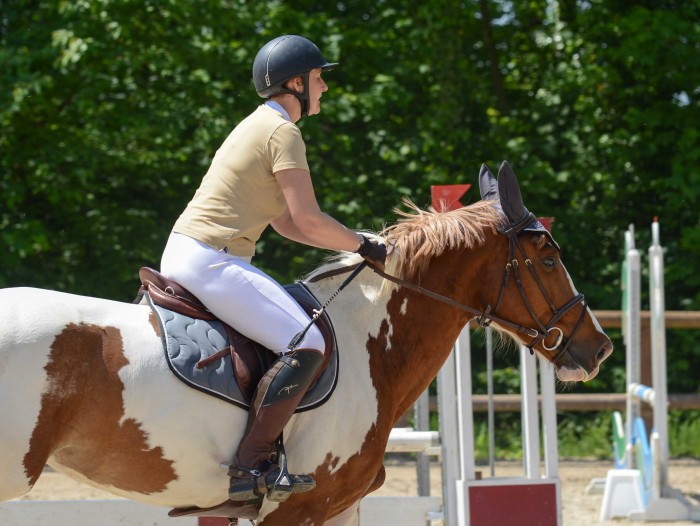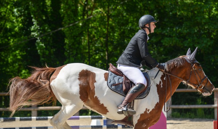Je prépare Tanka, on met les grandes chaussettes et hop, dans la boite qui roule. Arrivés à Orsay, on part à la reco: rien de bien compliqué,un double, puis une option possible pour prendre le 8 ( oxer) en biais. Je reconnais les deux options, on verra le moment venu.On va détendre, la détente se passe en manège. Et hop, on est parti ! Tanka a du gaz. Presque toute la carrière est au soleil, sauf la réception du 1... on part sur le 1 et Tanka s'arrete... Nomeho !!