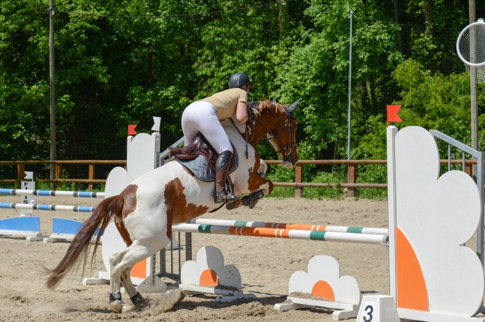 Ensuite, après une pause, la club 2. Les barres sont montées, des soubassement ajoutés, et ils placent un bidet dans le 2 du double. Je refais une reco rapide. La détente se passe bien, on y va. Cette fois ci, je me méfies du 1, en la motivant avec des appelsde langues, ca passe nickel... le 2, suis le 3 en ligne brisées, la foulée ne vient pas bien, Tanka s'arrete... pas grave, on y retourne, ca passe... du coup, on reprends l'option, qui repasse nickel ! On finira donc 4 points, mais avec le temps le plus rapide !