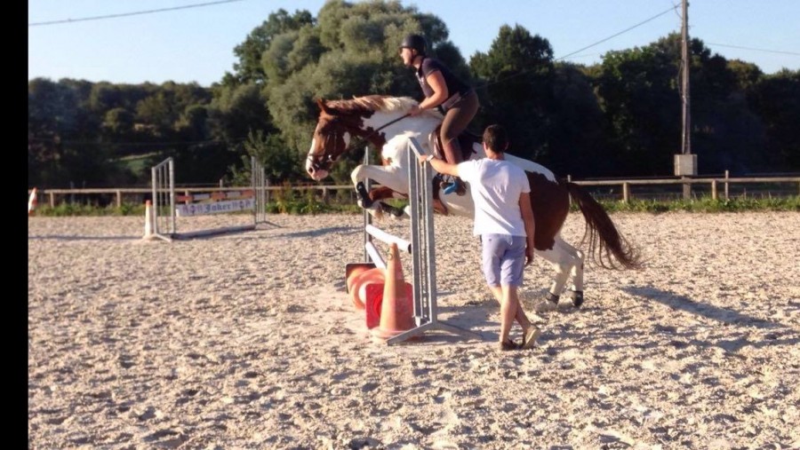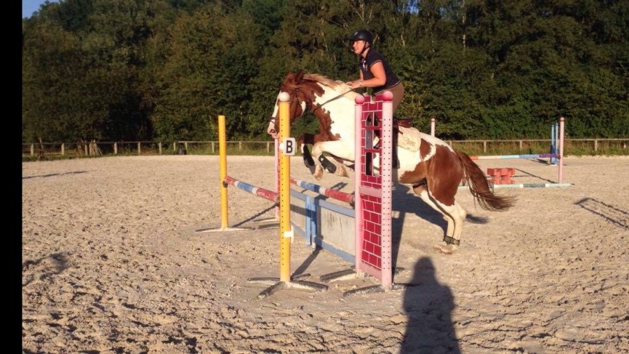 ), elle commence à bien présenter comme dirait coach. Epaules en avant, suivi de quelques foulées d'épaules en dedans, session au pas et au trot. Dans les sessions, je manque encore de croisement derrière, mais ca commence à venir.