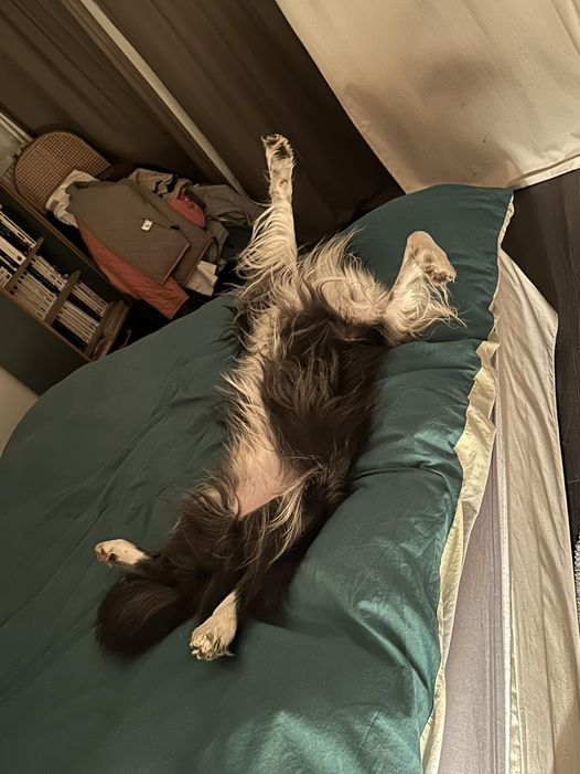 Le soir, petit apéro à la maison avec une autre copine de poney. Peyo était heureux, plein de filles pour caresser, il a passé la meilleure soirée de sa vie. Bon du coup, hier soir, il a payé ses excès de la veille