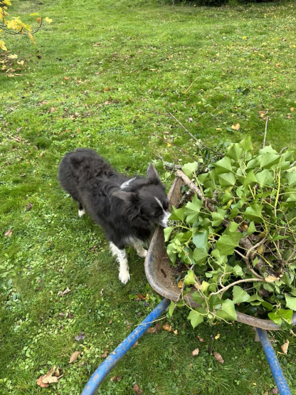 Chouette week end de jardinage, on a pu tronçonner des deux arbres tombés avec la tempête... J'avais de l'aide pour rentrer le bois