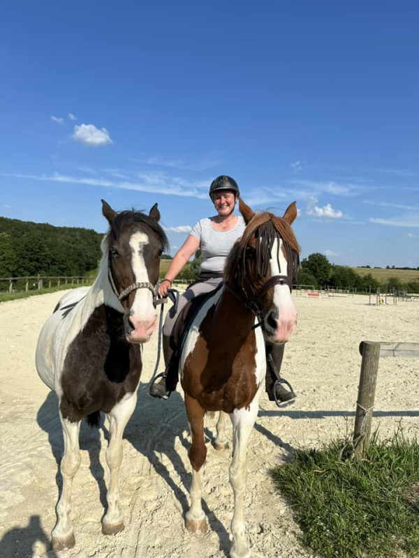 Allez go sur la piste de galop avec Vish en dextre ! Du pas et même du trot. Tout le monde a été sage !
