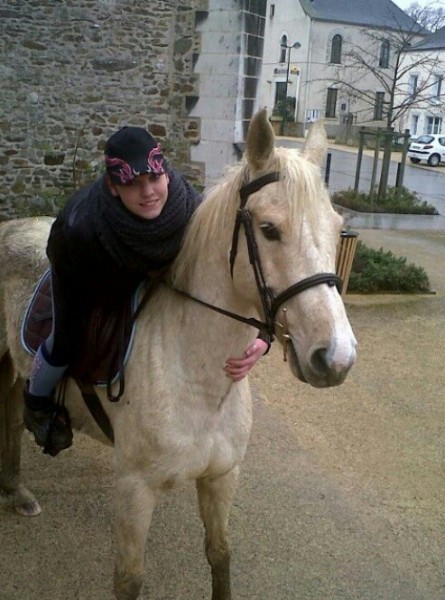 Euh oè ben je me vois mal avec mon casque de moto à cheval moi ...