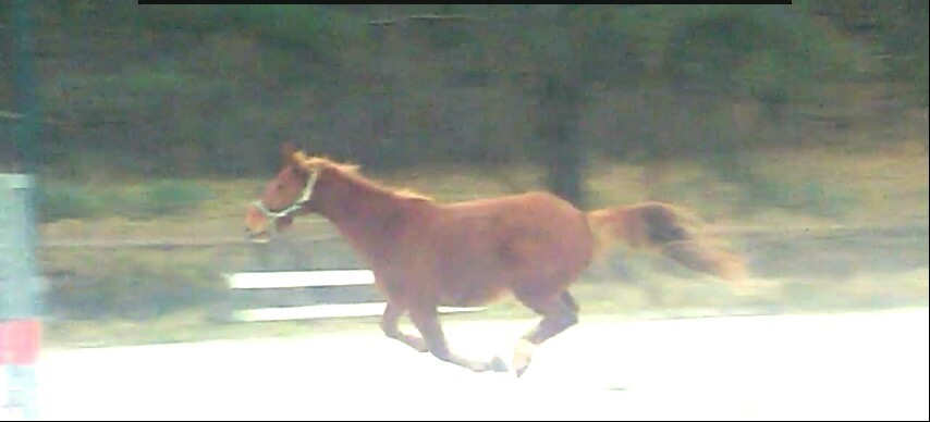 Je participe avec cette photo, où l'on voit bien qu'il fonce sur ce machin qui fait peur