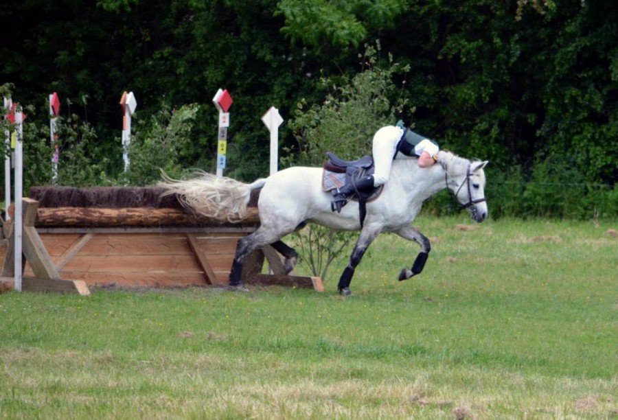 Dernier obstacle... Le poney retape devant et voilà... Je perds mes étriers. L'angoisse de se sentir glisser comme ça . Je pensais qu'à une chose : "retiens toi au moins jusqu'à la ligne d'arrivée" XD
