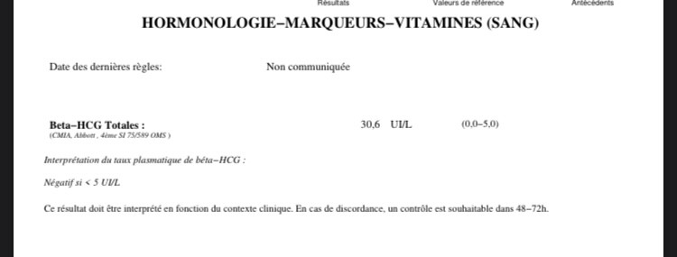 En gros dans l'idée tu peux refaire une prise de sang dans 48h pour voir si ça a bien augmenté :)