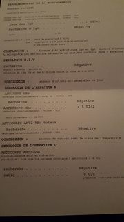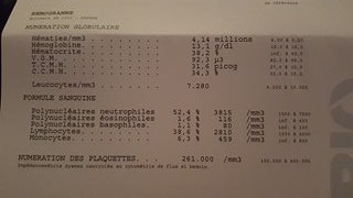 J'ai eu les résultats de mes prises de sang, si vous êtes motivées pour me les réinterpréter, je ne suis pas contre