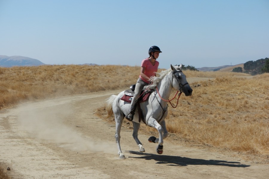 Nous avons pu néanmoins tenter une petite pointe de galop dans un chemin en herbe pour son plus grand plaisir!