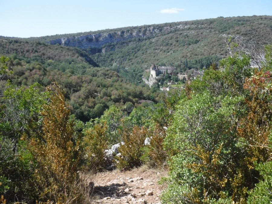 On retraverse le village pour prendre le chemin qui grimpe sur le causse de l'autre côté du Célé . Belle grimpette !!!
