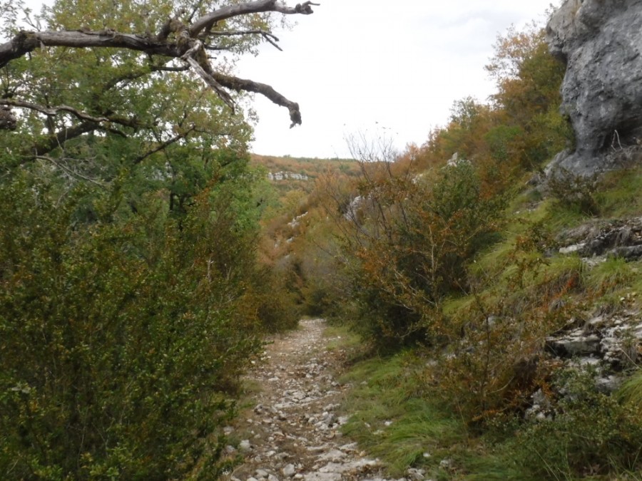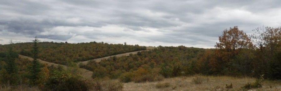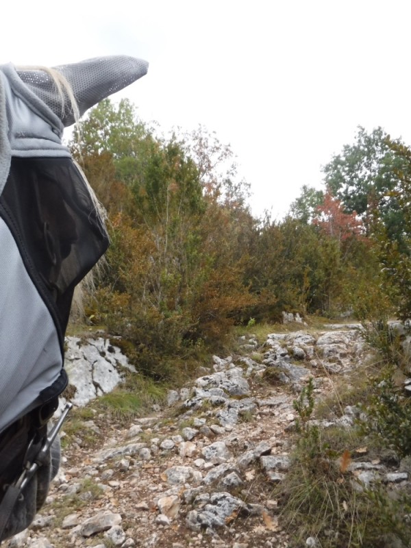 Il a commencé à bruiner. Arrivée sur le causse toujours un petit crachin. Non on ne rentreras pas au plus court. Oui on terminera sous une belle pluie , bien trempées toutes les deux.