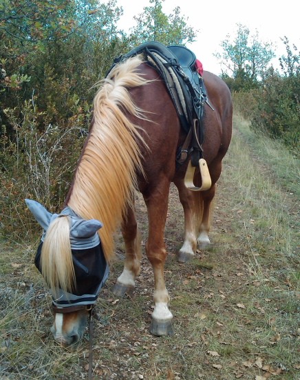 (Pour la petite histoire le premier jour de la rando, je ne pouvais pas l'approcher : oreilles en arrière, naseaux pincés, reculant devant moi. 2ème jour : oreilles en arrière mais ok ; 3ème jour, accepte les gratouilles, et sieste quand je suis à côté. Comment voulez-vous résister ?)