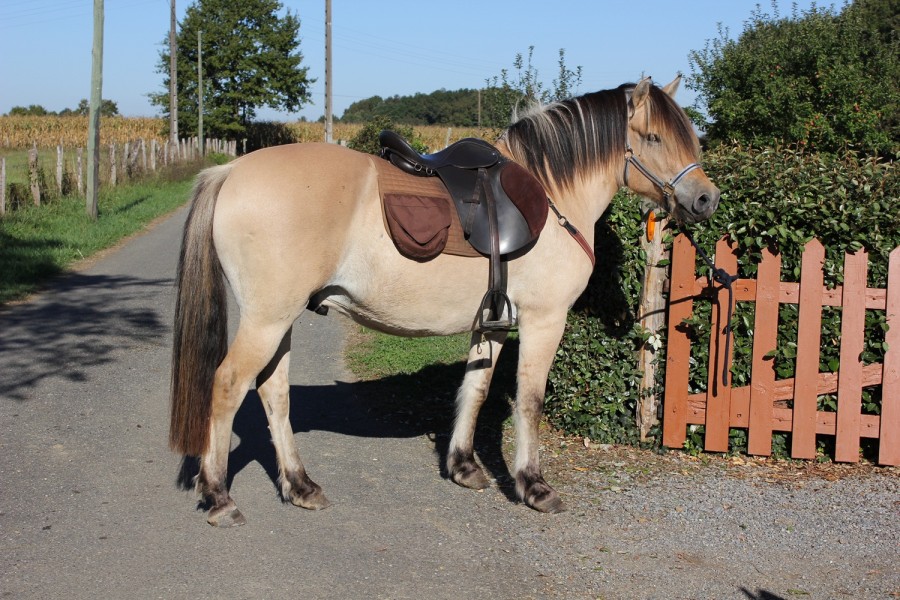 Mais je pense aussi qu'il a l'air sellé un peu trop en avant, ce qui n'aidera pas pour voir si elle convient bien ou non. Il faut que la selle soit bien posée sur son dos, là où elle se pose et se "bloque" naturellement. En plus sur ces chevaux avec de bonnes épaules, la différence se voit nettement : quand ils sont libres de leurs mouvements ça va nettement mieux !