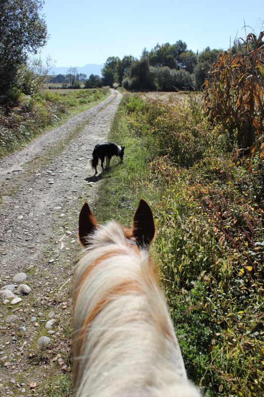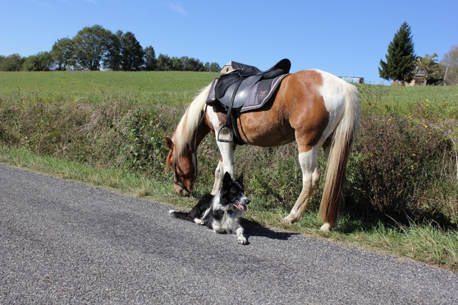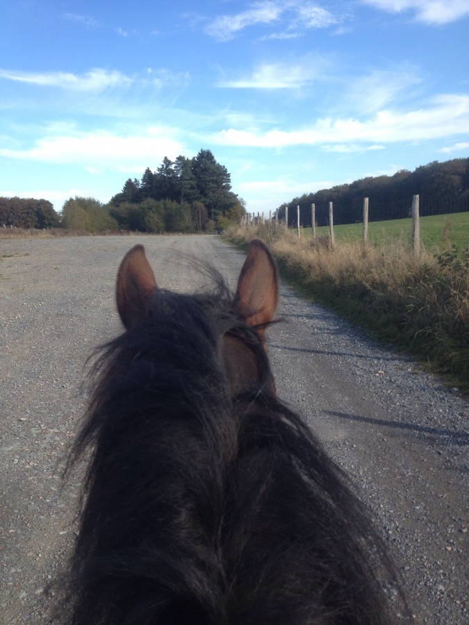 J'ai sortie Apache hier sur une petite balade que l'on fait souvent. Premier galop, il tousse puis rien. Je m'dis qu'il s'échauffe les poumons (ouais, je m'dis des trucs bêtes souvent), je poursuis, beaucoup de trot, du dénivelé au pas, petit monsieur souffle bien, rien d'anormal mais au galop en pente dont il prend le départ seul (on a nos habitude même si ce n'est pas conseillé), il tousse, d'une toux profonde et très sonore, se déséquilibre, manque de nous faire tomber et la surprise passée, je repasse au pas sans délai.