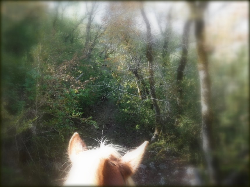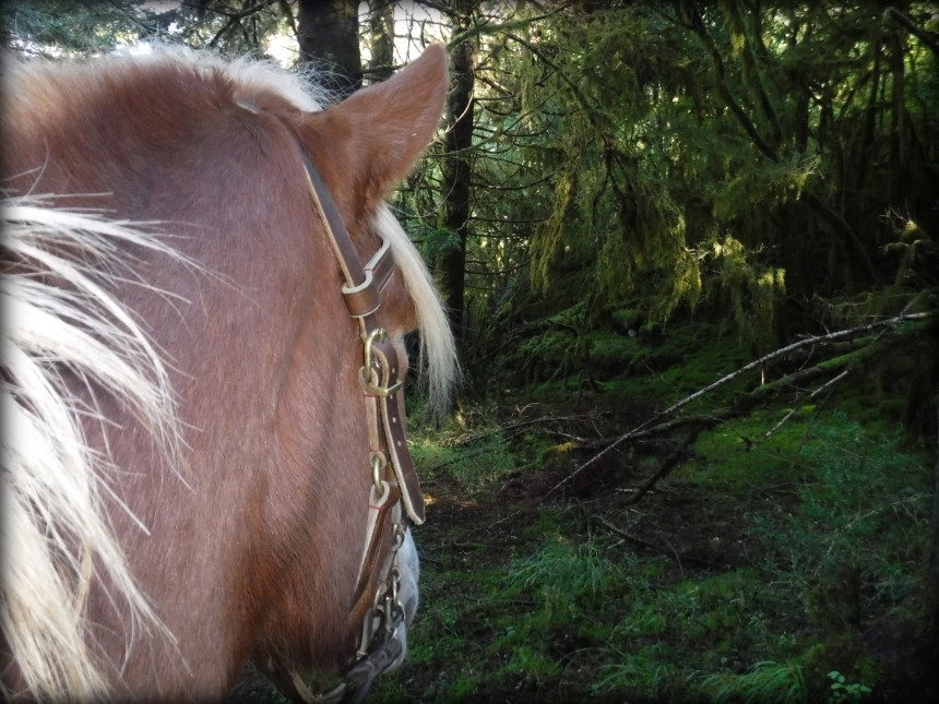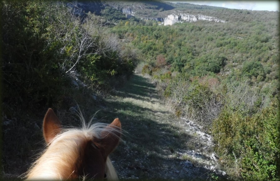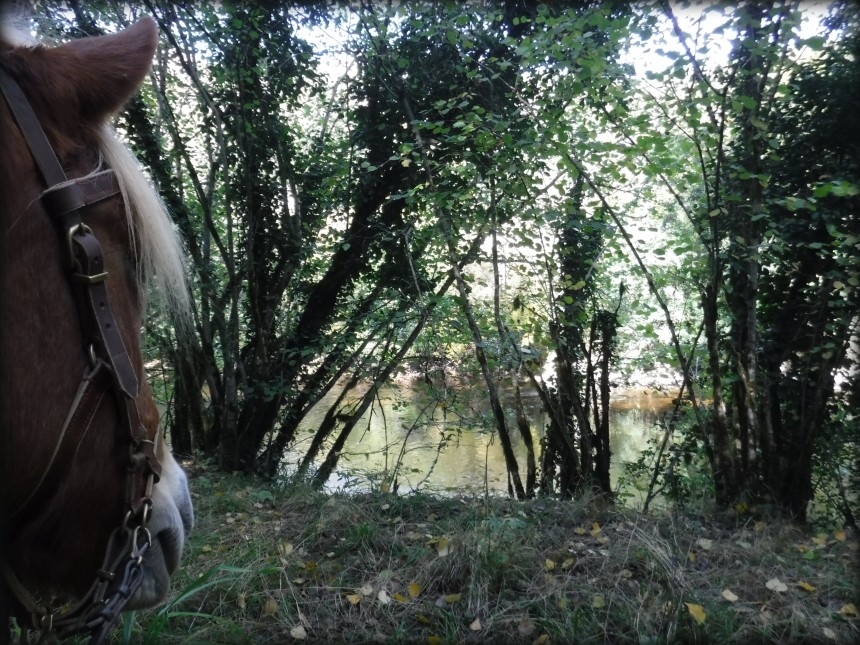 il me suit sans soucis ( je suis repartie par la même piste que la dernière fois) Je voulais changer le tour, et bien Monsieur n'était pas d'accord. Les 4 sabots plantés et plus un pas !