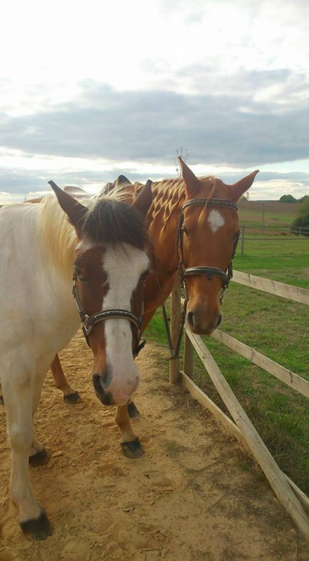 J'ai d'abord travaillé un peu le copain F en carrière, pour le réveiller et le mettre à l'écoute, petit tour à droite et à gauche avec Pot' en longe et hop tout le monde dehors !