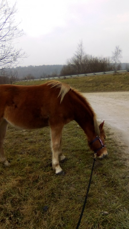 Aujourd'hui ça dégèle. Sortie en main avec Feeling et ma fille. Avant ça, elle m'a aidée à ranger la bâche,