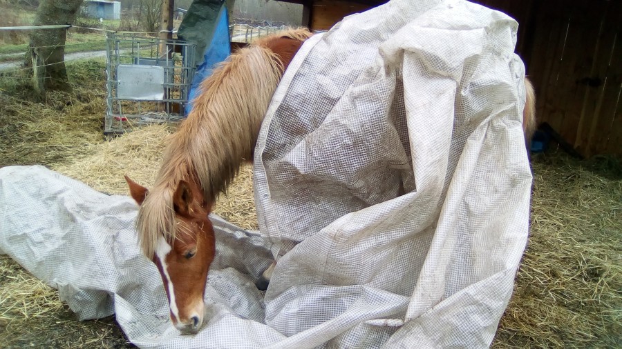 On a retrouvé Spirit trempée ! Elle a fait des aller-retour dans la boue...Du coup vous bouchonnage et séchante..