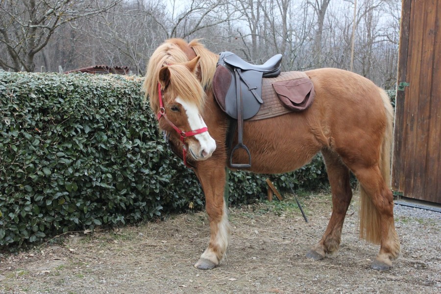 Cette aprem, faute de pouvoir monter Apache, j'ai monté Sobi, la poulette de compet', l'un des poneys de ma mère. Elle est gentille comme un coeur mais sur l'oeil en extérieur. Comme elle est gentille, ses réactions sont modérées mais elle est dure à avoir détendue.