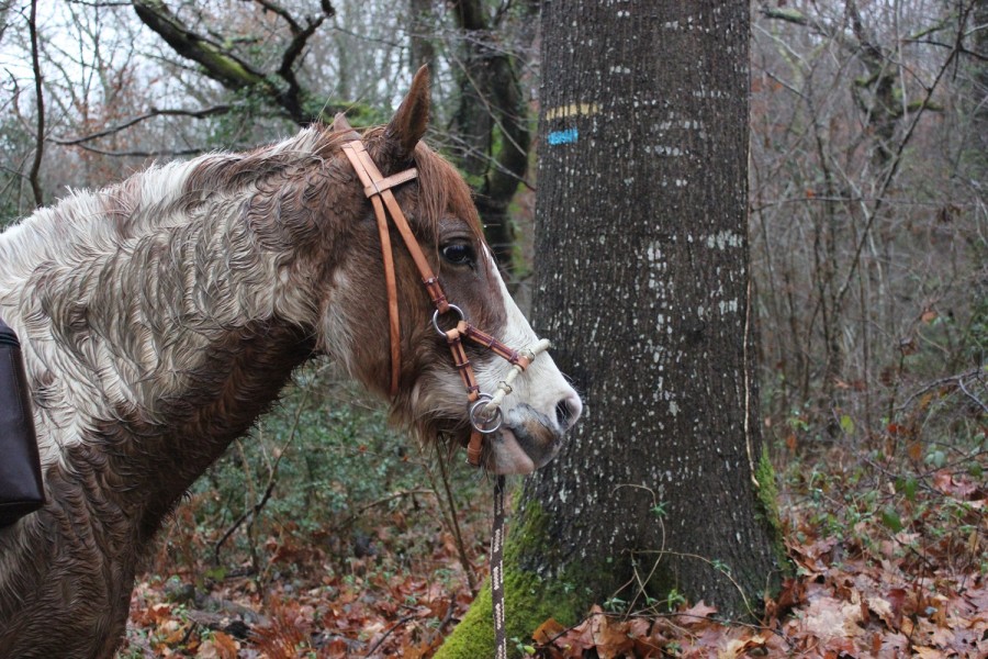 Allez hop , en selle , rênes longues , et au fond , direction le terrain de mania ( qui est caché par des arbres et roseaux ) , je vois un truc marton passer la vitesse V .