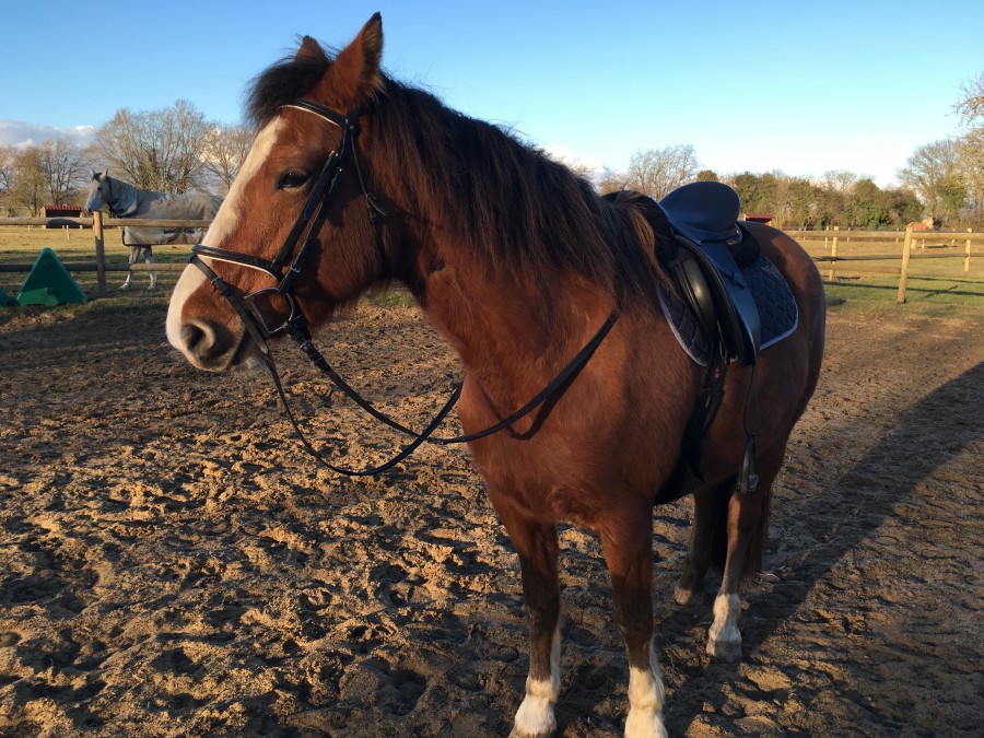 Vitalyss, poney Dartmoor leur tient compagnie. Il est débourré depuis 2015 et commence à travailler un petit peu avec des amies plus petites que moi.