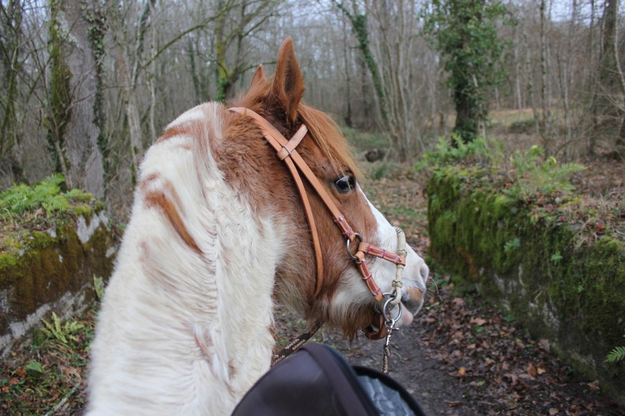 J'étais très enthousiaste en partant et Apache aussi mais avec la concentration en moins du coup il s'est très mal tenu et m'a fait mal au dos. J'ai fait la tronche les 3/4 de la balade et je l'ai quitté fâchée. Lui ça allait, il était toujours loin dans sa tête.