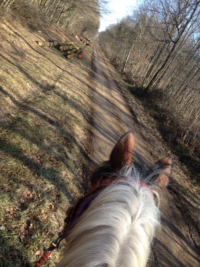 Elle se met en mode girafe, bloque, finit par venir sentir..passe à côté zen, et me refait le même cirque aux grumes d'après...Même chose pour les branches au sol ou sur le côté. Donc au pas, ça va, mais dès qu'on essaie de mettre de l'allure, on doit s'attendre au freinage à tout moment...