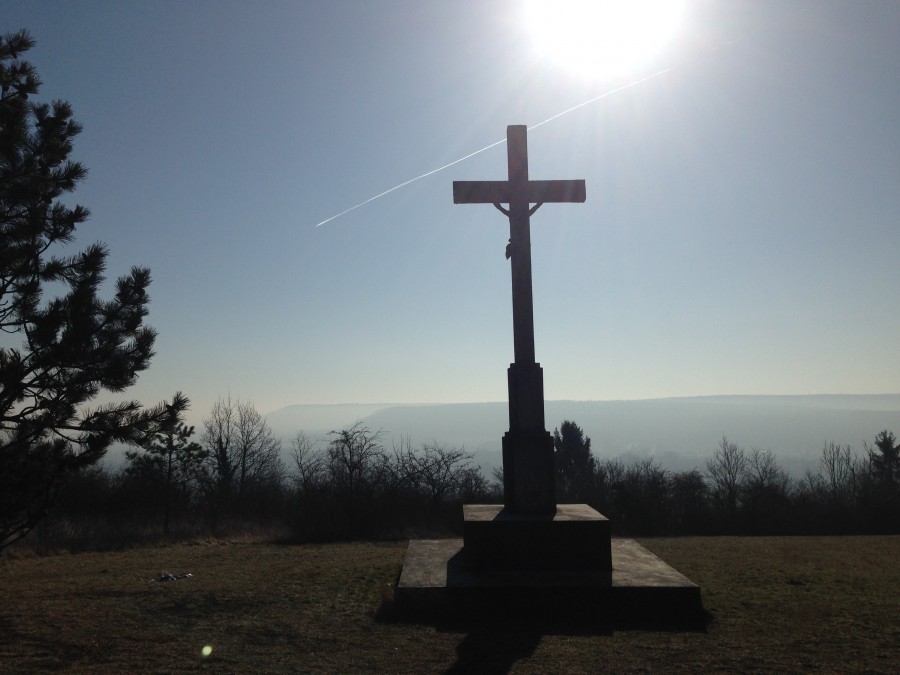Après cette croix surprenante..plus de chemins. On a pris à travers champ pensant que ce serait court, mais c'était long, ça collait au sabots, y'avait des cailloux, ça a pas aidé à la motivation!