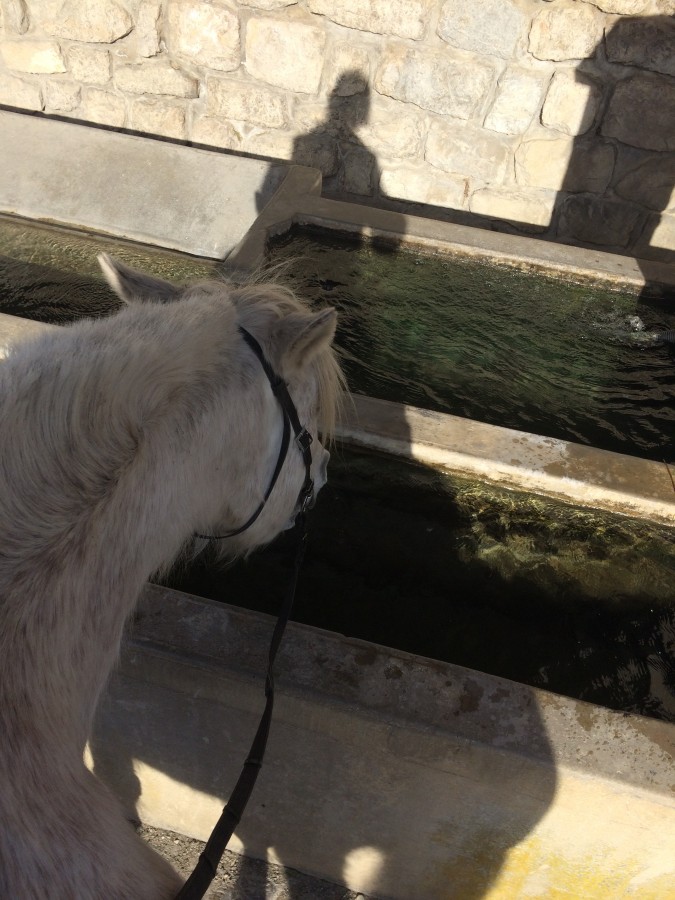J'ai voulu changer un peu et j'ai décidé d'aller faire le tour du champ qui se trouve à l'entrée du village. Il a fallu prendre un bout de la route principale, assez passante. Poney était super attentif et soufflait façon " on va pas par là d'habitude je connais pas !" . Il aime pas trop les canards !