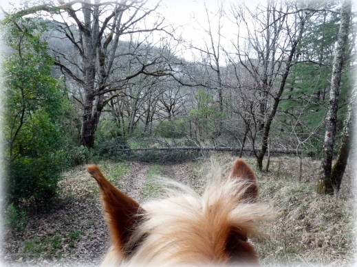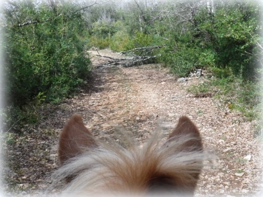 On a fait un peu d'exploration dans la montée, mais cela ne nous a pas réussi. J'ai terminé couché sur Luna pour passer sous les branches ... et tout ça pour devoir faire demi tour un peu plus loin , car plus de passage du tout