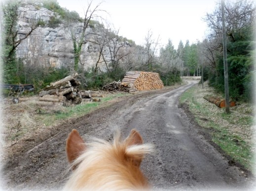 On a traversé la route de la vallée , on est passée à côté de gros tas de bois fraichement coupé, Luna n'a même pas sourciller